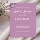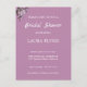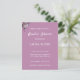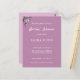 Friskt och elegant bröllopsfest inbjudan med en blomsterbemålad bukett i övre vänstra hörnet tillsammans med dina detaljer i vit script över en lavendelbakgrund.