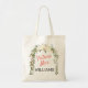 Dela din upphetsning med alla genom att bära denna söta toteväska som har en vacker blomsterbåge med korallfärgad text. Designen har modern typografi som säger "Framtidig fru" och du kan anpassa den med ditt framtida efternamn. Så söt för en bröllopsfest eller bara för att komma ut och umgås.