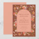 Elegant vildblomsvalv i bränt orange, terrakotta och persika höstbröllopsinbjudan. Denna förtrollande boho-chica blommiga bröllopsinbjudan är en fantastisk blandning av höstlig värme och elegant charm. Med handmålade, akvarell-vildblommor runt en elegant valvdesign visar inbjudan en rik färgpalett av bränt orange, bränd umbra, korall, orange, brun, gul, grön, terrakotta, korall, lila och rosa. De varma jordnära tonerna skapar en perfekt harmoni, vilket gör den till ett idealiskt val för ett höstbröllop. Den eleganta skrivstilen och den moderna typografin ger en touch av sofistikering, medan de lekfulla vildblomsakvarellerna runt fönstret lägger till en personlig, bohemisk touch till alla dina viktiga bröllopsdetaljer. Designad av den begåvade konstnären Catherine Sweetman, förkroppsligar denna unika inbjudan andan av en mysig, intim fest i höstens hjärta. Med lätt-anpassningsbara mallar erbjuder den ett smidigt sätt att