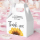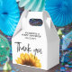Denna vackert designade väska/låda fångar höstens värme och skönhet, med en söt solros i mitten. I påsen visas en solros, vilket framkallar höstens mysiga och välkomnande känsla. Den stora och ljusa solrossen från grund i lådan ger en glad beröring och skapar den här perfekten för en fallbabydusch. Texten visas i ett snyggt och lättläst teckensnitt som förbättrar det naturliga temat för favärdet. Anpassa förmånslådan med ditt namn, din familj namn, händelsemedatum och andra viktiga detaljer, så att den korrekt återspeglar firande.