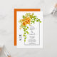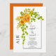 Orange vattenfärgsblommor, bål och mongram faller bröllopsinbjudan. Den här fina bröllop-designen har ett bågstycke ram med orange cactus blommor och grönt löv på det lämnat hörnet och ditt monogram. Namn är i skripttypografi.