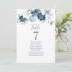 Planera din bröllopsmottagning med precision, från "spara datumet" till bröllopsdagens händelser som mottagning och sittplatser med dessa dammiga blå blomsterformade bordskort.