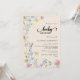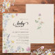Denna vackra baby shower-inbjudan med vildblommstema ger den perfekta tonen för din baby shower. Designad med ett iögonfallande, handskrivet manus omgivet av en vacker detaljerad bukett av boho-vildblommor i rosa, blå, gula och gröna nyanser. Låt denna vackert skapade design förverkliga din vision för baby shower – anpassa den med din information. Finns som en direktnedladdning som du kan skicka som en Evite eller utskrivbar inbjudan eller beställ tryckta inbjudningar som skickas till ditt hem.