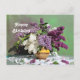 Blomsterbukett med lila och vita syrenar födelseda vykort