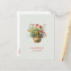 Denna bild är en vacker akvarellmålning av en blomkruka som svämmar över av livliga blommor i rött, rosa, gult, vitt, lila och orange. Den mjuka färgblandningen och de känsliga penseldragen ger den en glad, handgjord charm. Under buketten står ett meddelande med röda kursiverade bokstäver: "bara en liten lapp för att säga hej", vilket ger en varm och personlig touch.