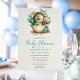 Välkommen en liten en med denna förtrollande blomsterdekorerade dinosaurieägg inbjudan till babyfirande. Med en akvarell-baby dinosaurie som kläcks ur ett ägg, omgiven av ömtåliga blommor och grönska, är denna inbjudan perfekt för en natur- eller dinosaurie-inspirerad fest. Perfekt för föräldrar som väntar en pojke, den kombinerar fantasifulla och mjuka element och skapar en unik och minnesvärd design för att fira det kommande tillskottet.