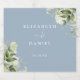 Elegant blomstergrönska dammig blå bröllopsdesign personlig med era namn och speciella bröllopsdatum. Designad av Thisisnotme