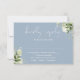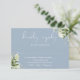 Detta eleganta bröllopskort med dammig blå botanisk grönska kan anpassas med din information i chic typografi. Designad av Thisisnotme©