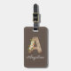 Brun trämonogram A bagagetagg. Perfekt för gåva. Lägg till ditt namn.