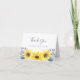 Eleganta rustika blommiga tackkort låter dig uttrycka din tacksamhet med elegant stil. Framsidan visar en klunga av gula akvarellsolrosor, gröna blad och små marinblå knoppar, med ett eget meddelande i handskriven stil (visas med "tack") och ditt/dina namn. Personliggör insidan med ett eget förtryckt meddelande och signatur, eller radera för att lämna tomt på insidan. Designad för att samordna med vår evenemangspappersvarukollektion Flowerfields.