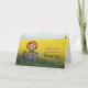 En ung rödhårig flicka i en gul blomsteräng iförd en lila klänning & skor med ett gult hjärta bär en korg med blommor och ser söt ut. Rolig och ungdomlig. Du kan ändra framsidans text och texten inuti. Jag kommer snart att publicera i mappen "Hennes" en del oföränderlig text på framsidan för denna design också.