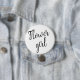 Fullborda din brölloppsfest med "Flower Girl Black Script Button". Med sin eleganta svarta typsnittsdesign är denna knapp ett genomtänkt och stilrent tillbehör för den yngsta medlemmen i ditt brölloppsfölje. Den är perfekt för att lägga till en touch av charm till blomsterflickans outfit på den stora dagen.