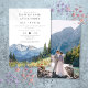 Denna eleganta vattenfärgade bergiga blommotiv för bröllopsinbjudan för lyckliga för evigt-firande kan personanpassas med er information i chic typografi och ett speciellt foto på baksidan. Designad av Thisisnotme©
