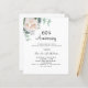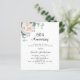 En vit bakgrund. Dekorerad med en vit blomma, peonblomma och grön akvarellfärgad eukalyptusgrönska. Anpassa och lägg till era namn och detaljerna.