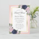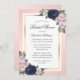 Elegant marinblå och rosa blomsterinbjudan till bröllopsfest. Matchande artiklar finns tillgängliga.
