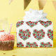 blommigt, viskös och rött petuniskt hjärta med fjärilar på vit bakgrund