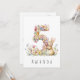 Gör en lillas 5-årsdag extra speciell med det här charmiga kortet, med en delikat akvarellillustration av siffran 5, vackert utformad av små, färgglada pastellfärgade blommor. En söt kanin står bredvid siffran och nosar lekfullt på blommorna, vilket ger en touch av sötma och glädje till designen. Oavsett om du är förälder, mor- eller farförälder eller familjevän, är det här förtrollande kortet säkert att ge både den lilla och deras nära och kära ett leende.