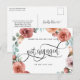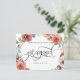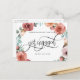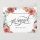 Nyligen förlovad? Grattis! Dela dina fantastiska nyheter med familj och vänner med detta eleganta förlovningskort! Underbar design med handmålad akvarellblommig krans med blommor och blad i rosa, persika, dammros, blåmint och gröna toner, och i mitten era namn och frasen "Blir gifta" i vacker handskriven kalligrafi. Möjlighet att lägga till eget meddelande och extra information (som information om förlovningsfest eller save the date-information) om ni önskar, för att lägga till fler textrader kan ni välja att anpassa ytterligare. Baksidan med handskrivna kalligrafielement och blomsterdetalj längst ner.