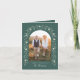 Fira säsongen med elegans och stil med vårt vackra och moderna julkort med blomsterkrans och välvd fotoframställning. Detta fantastiska kort har en framsidesdesign som visar ditt favoritfoto infogat i en välvd ram. Runt fotot finns en handritad krans av löv, bär och ömtåliga krämfärgade blommor, vilket ger en touch av sofistikerad charm. Orden "God Jul" är graciöst inskrivna längst ner, kompletterade med ditt namn för en personlig touch.