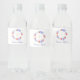 Etikett för vattenflaska med blomsterkrans av pioner för dop. Matchande artiklar finns.