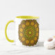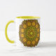Abstraktens sammansättning i form av mandaladiagram skapat med många nyanser av gult, från ljusskuggor till gröntens orange och brun nyans. Bilden ser ut som en abstrakt solrosa med många koncentriska former som petaler som sprider ljus, färg och skina. Den här abstrakten inspirerar sol, dess ljusstrålar, värme och glöd. Gult mandala betyder makt, ljus, glädje, det här är färg i den tredje chakran. Manipura, Solar Plexus Chakra är den personliga maktakra som är ansvarig för sin personliga och professionell framgång. gulten färg är förknippad med brand, energi och laddning. Vår syn och binjurarna är förknippade med Solar Plexus Chakra. Den här designen är lämplig för alla utrymmen och objekt för att inspirera glädje och livskraft.