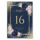 Elegant marinblå och rosa blommig bröllopsbord nummer. Matchande föremål finns tillgängliga.
