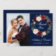 Akvarell Burgunder Marsala Blå Blomsterkrans Bröllopsfoto Tack Kort - Blå Baksida