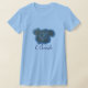 Färgning av ett vackert blått ro, som visas på en ljusblå t-skjorta, med Bride skriven på den. Du kan anpassa med annan text och markera stil och färg på T-skjortor. Bläddra bland matchande bröllopsinbjudningar, Postage Frimärke, Spara datum magneter, Stickers och Postcard, Bröllop Ties och Möhippa Totes: