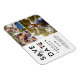 Den här blomsterskriften maron 3 fotot spara datum magneter är perfekt för ett fallbröllop. Utformningen har en liten bukett av burgundy- och persikoblommor på fet typografi för ett modernt elegant-utseende. Anpassa magnet med tre av dina favoritfoton på förlovningen, namn, bröllop datum och mer information.