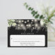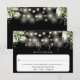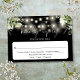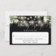 Detta eleganta svarta och vita bröllops-svarskort med vackra strängljus och blomstergrönska kan anpassas med din information i chic typografi. Designad av Thisisnotme