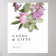 Välkommen gäster med elegans med denna skylt med kort och gåvor till bröllopsfest med blomsterträdgård, med ömtåliga botaniska illustrationer och ren, modern typografi. De mjuka trädgårdsinspirerade blommorna i kombination med en minimalistisk layout skapar en fräsch och sofistikerad look för bröllopsfester eller förlovningsfiranden. Perfekt för att placera på ett gåvor eller välkomstbord, denna skylt styr vackert gästerna samtidigt som den kompletterar modern blomsterfestdekoration.