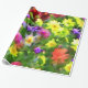 Detta konstnärliga blom- slående in papper täckas med samlas av blommor i varje färg av regnbågen. Tyck om den röd, för det blått-, lila- och vitabstraktmönster uppsättningen för gult, för orangen, för rosor, på en bakgrund av gröna löv. När du beskådar detta, påminns en av en fransk Impressionistmålning.