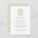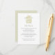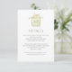 Denna eleganta design har en handmålad blomsterkrans dekorerad med ömtåliga vita prästkragar, smörgula rosor och mjuk salvia grönska. I mitten sitter ett sofistikerat anpassat monogram över en urblekt skiss av ett klassiskt hus med picketstaket, perfekt för par som är värd för ett trädgårds-, kapell- eller traditionellt godsbröllop. Matchande inbjudan och mer tillgängligt på Cross Fox Design.