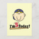Baskeball 5:e födelsedagskalan t-shirts, mugg, magneter, kort, klistermärken, tote bags och mer med en blond basebollbollspelare med blå hatt, baseboll, fladdermus och text som lyder "I'm 5 Today!".