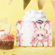 En guld- blond hårflicka med kattöron som ha på sig armékamouflagebinikien som omges av rosa och röda vattenfärgstänk.
