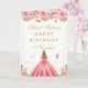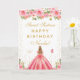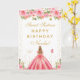 Denna eleganta och glamourösa söta sexton födelsedagskort kan personifieras med ett namn eller titel såsom dotter, sondotter, systerdotter, vän etc. Designen visar en vacker prinsessa med blondt hår och ljus hy i en rosa balklänning. Texten kombinerar handskriven stil och moderna sans serif-teckensnitt för en klassisk och sofistikerad look. De blomsterarrangemang, fjärilar och gyllene konfetti skapar den perfekta blandningen av rustik och chic.
