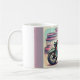 En ung flicka på motorcykeln med sin ingerkatt, stilad i ett stift-up-mode mugg
