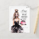 Blond flicka svart klänning födelsedagstårta akvarell vykort