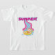 En söt design för sommaren med en blond, kylig flicka i badande kostym och ring som kommer ner på vatten-sidan och shock rosa och blå text som lyder SOMMER! Sommar T-tröjor, kostymer, biber, mugg, kort, påsar, klistermärken, keepsaker, kuddar och mycket annat.