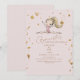 Blond ung flickas gymnastik eller dans födelsedagsfest inbjudan. Rosa och guld. Tumla och snurra. Rodnad.