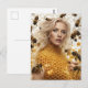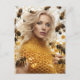 En blond kvinna med en honeycomb-utrustning omgiven av honungsbin fantasi AI skapade konst
