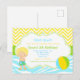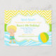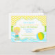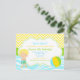 En inbjudan till poolparty för en pojke med blondt hår. Orden kan ändras för att passa dina egna behov.