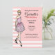 Designad utifrån min illustration av en vacker blond dam som bär en fantastisk klassisk elegant rosa rosor cocktailklänning, bär vackra svarta stövelskor. Designen har ett persikorosa och vitt randigt mönster - en chic och modern stil. Kan anpassas med egen text för en personlig design.