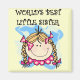 World's Best Little Sister T-shirts, mugg, munssaxar, klistermärken, magneter med mera som kan vara personlig med text eller namn. En liten flicka med blond hår i braider med rosa bows.