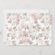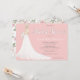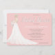 Inbjudningskort för möhippan har en strålande blond brud i vit bröllop och rosa och vit ros blommönster på baksidan.