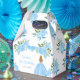 This birthday party favor box features faux glitter bright blue floral flowers and a beautiful princess with blonde hair and an elegant dress. This is perfect for a birthday party.