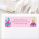Söt rosa personlig prinsessan som skickar ut etiketter med en vacker liten blond flicka i en drottning boll, med rosa bows framför ett rosa- och isblått slott. En söt adressetikett för anpassningsbarna för barns födelsedag party.