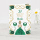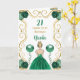 Det här födelsedagskortet har en elegant guld ram, en vacker prinsessa med blondinskt hår och en grönt, blommor och ballong.