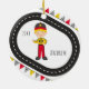 Fira helgdagarna med den blonda pojkens julprydnad med en glad unge i ett rött och gult tävla, omgivet av en tävling-bana och festive-kontrollerad flagga bunting. Roligten för lilla tävling fläkt kan vara personlig med ditt barns namn och år för att göra det speciellt i extra. Perfekt som lagerhållare, träd-dekoration eller helgdag-gåva till bil älskare, ger denna prydnad tävlan upphetsning och fräckhet till er familjs Julgran.
