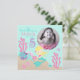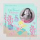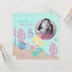 Ett kort med inbjudan till undervattensvarelser i sjöjungfru fem.